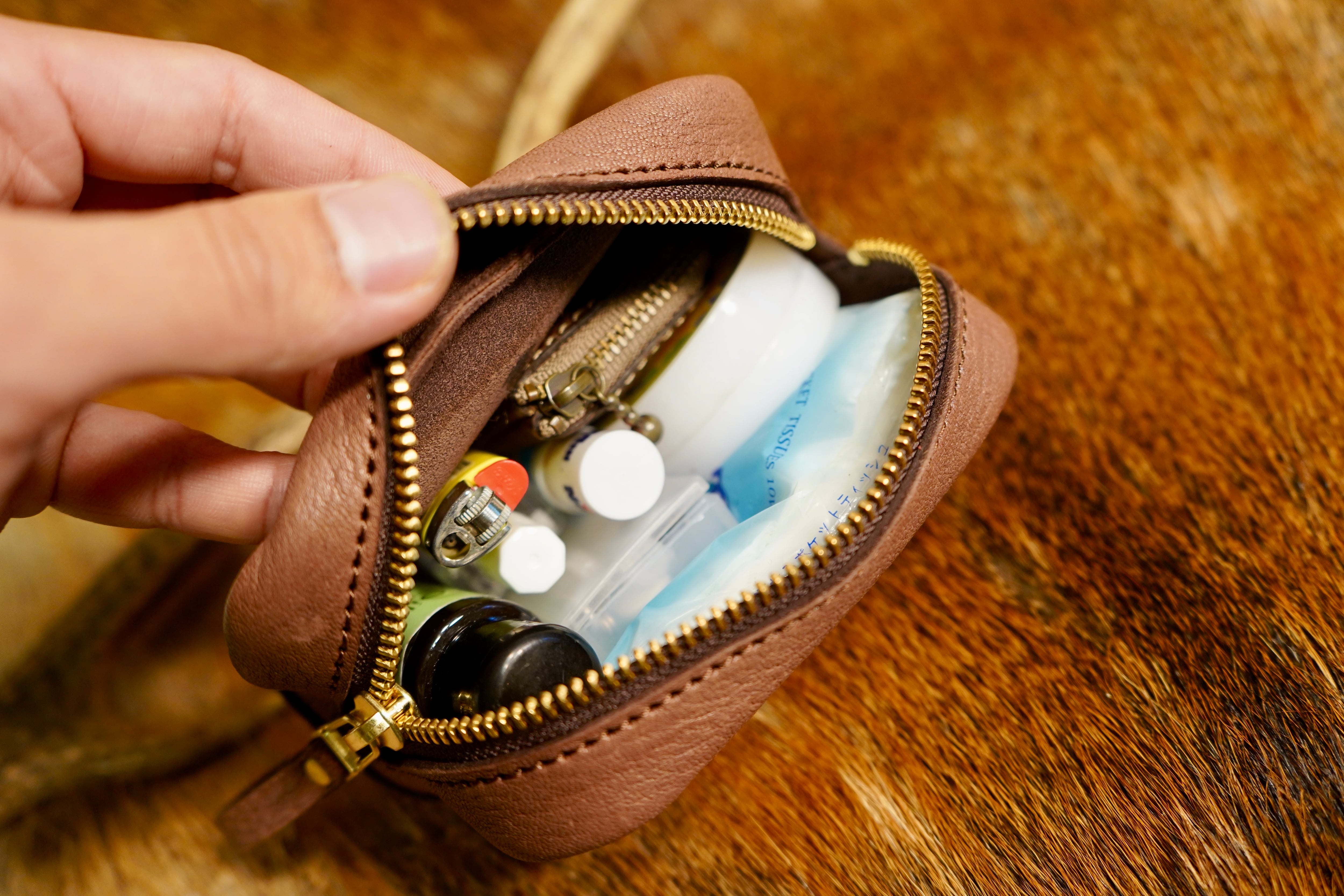 手に吸いつくような質感と、見た目以上の収納力が魅力です。