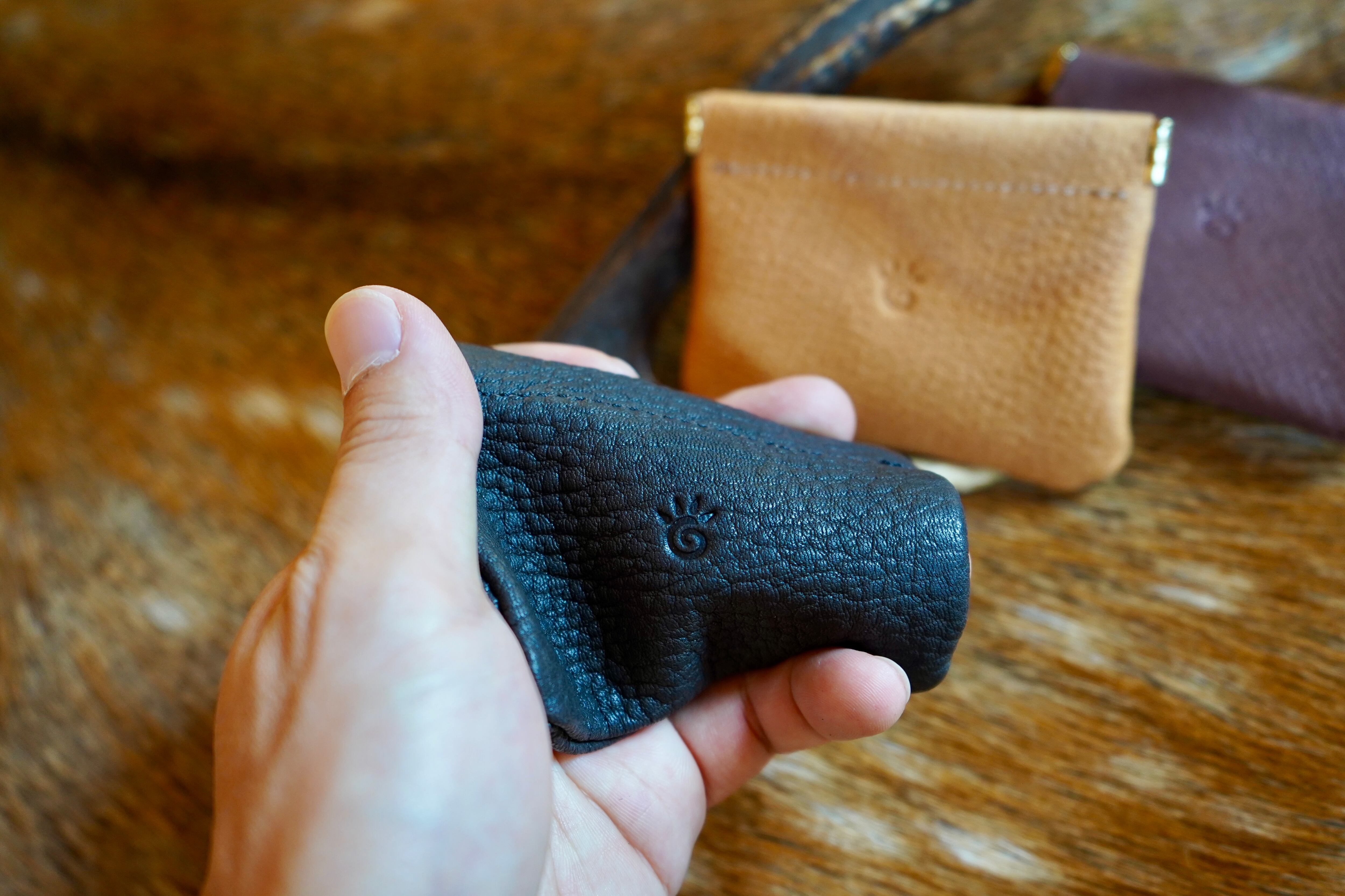 鹿革は、均一な見た目や質感を持つものではありません。野生で生きてきた証として、傷跡や、虫刺されの痕が現れることがあります。そういった痕跡を欠点ではなく、個性として捉えています。鹿の背景にある物語を感じて欲しいです。同じものは二つとない。それぞれの革の表情を活かし、一つひとつ仕上げた製品です。